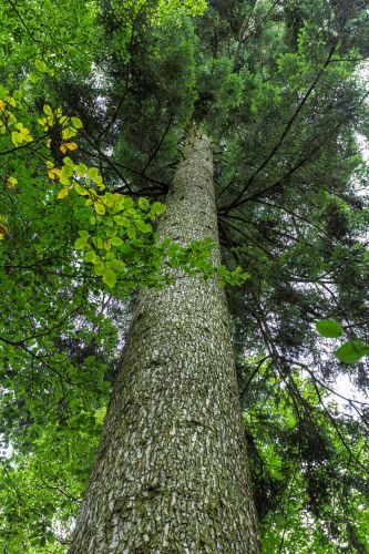 Roste ukrytá v lesním porostu mezi Kolvínem a vrchem Okrouhlík. Je jedinečná a mimořádně významná svým vzrůstem a stářím. Její vlastník - Vojenské lesy a statky ČR - ji dosud vedl v rámci své databáze významných stromů. Dle tohoto zdroje je stará přes 200 let a vysoká 45 m.