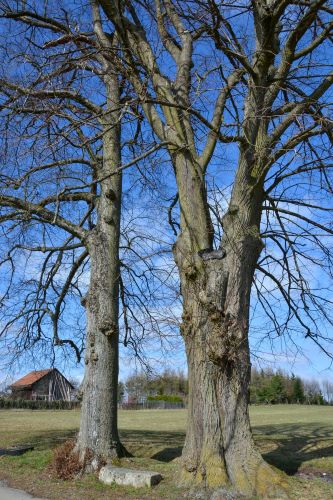 Lípy kdysi někdo vysadil u křížku. Kdy to bylo, se nám i přes nemalé úsilí ochotné paní starostky nepodařilo zjistit, každopádně křížek lze nalézt již na mapě stabilního katastru obce z roku 1838 (zaznamenaný jako dřevěný kříž). Další historický pramen - letecký snímek z roku 1938 - lípy ukazuje už jako vzrostlé stromy samostatně rostoucí při okraji pole.
