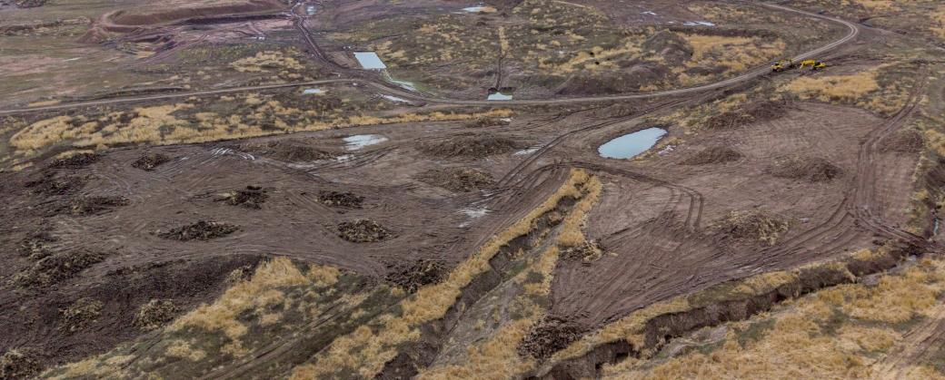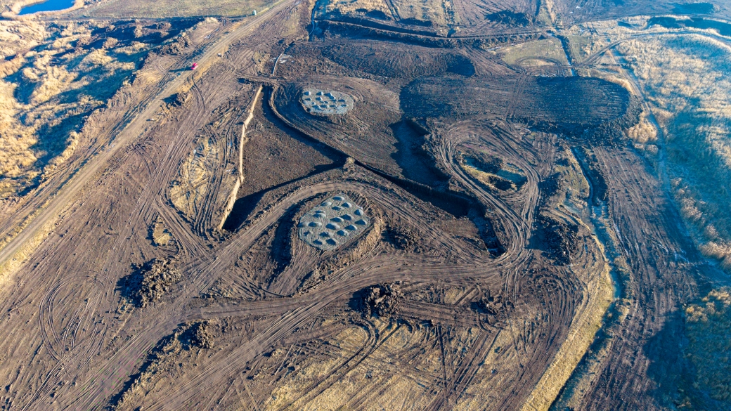 Další zásahy jsou spojené se strháváním vegetačního krytu s dominantním porostem expanzivní trávy třtiny křovištní (foto 3). Pokud totiž vytvoří jednolitý porost, mohou zhoršit podmínky pro další druhy rostlin a živočichů. Jedná se o managementový zásah za pomoci buldozerů a bagrů. Stržená hmota se prozatím shrnuje do velkých hromad. Ty se budou dále tvarovat do menších hřbetů a hromad tak, aby napodobovaly rozmanité prostředí, které vzniklo velkostrojovou báňskou technologií.