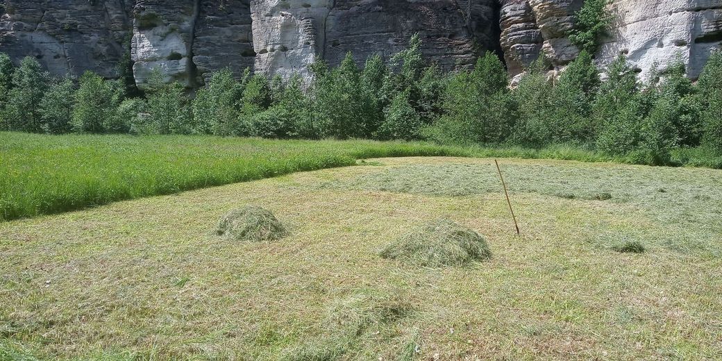 Příklad mozaikové seče s ponecháním nepokosených částí pro hmyz.