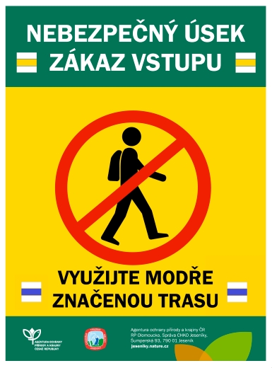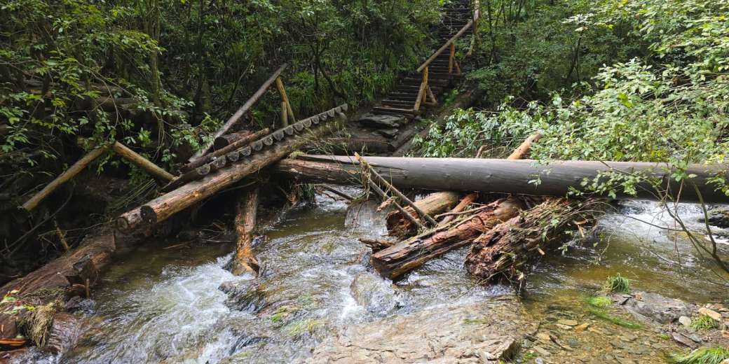 Voda poškodila a podemlela lávky na žlutě značené turistické trase. Ta je z bezpečnostních důvodů nyní uzavřena. Průchodná je pouze modře značená turistická trasa.