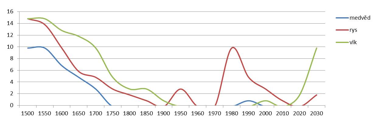 Výskyt velkých šelem v CHKO Jeseníky lze shrnout následovně. Vyhubení historických populací je zdokumentováno pro medvěda z počátků 18. století, rysa z poloviny 19. století a vlka z počátků 20. století. Medvěd se do Jeseníků nikdy nevrátil, nepočítáme-li zatoulané jedince, kteří se mimořádně můžou např. z Beskyd dostat až do této oblasti. Naposled se tak stalo v roce 1997. S trvalým výskytem medvěda tedy nelze v blízké budoucnosti v Jeseníkách počítat.