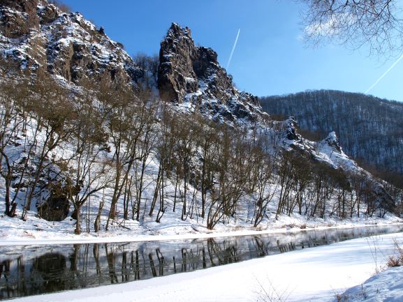 Řeka Berounka při svém zahlubování vytvořila podél celého toku četné zákruty tzv. meandry a nápadné ploché stupně, tzv. říční terasy.