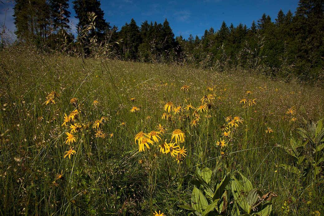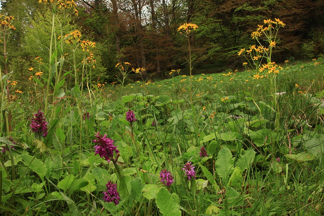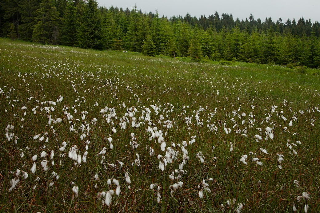 Na silně podmáčených místech vznikla nevápnitá mechová slatiniště a přechodová rašeliniště, která jsou nápadná různými druhy ostřic, suchopýrem úzkolistým a bohatým mechovým patrem s množstvím rašeliníků. Ze vzácných druhů zde roste např. rosnatka okrouhlolistá, vachta trojlistá, tolije bahenní, všivec lesní a tučnice obecná pravá. Na středně vlhkých stanovištích vznikly mezofilní ovsíkové louky a ve vyšších polohách horské trojštětové louky. V trojštětových loukách se často objevuje silenka dvoudomá, řeřišničník Hallerův a jetel kaštanový. V ovsíkových loukách se dají objevit i vemeníky zelenavé a dvoulisté. Na vlhkých místech jsou časté druhově bohaté vlhké pcháčové loukyvlhká tužebníková lada. V nich můžeme najít pcháč bahenní, potoční a zelinný, děhel lesní, tužebník obecný, skřípinu lesní, prstnatec májový i upolín nejvyšší.