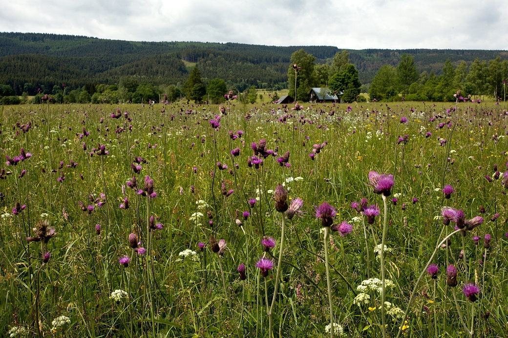 Vlhká pcháčová louka v Orlickém Záhoří.