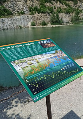 Ministezka s devíti panely, odpovídající na nejčastější otázky návštěvníků mikulovského lomu na Janičově vrchu.
