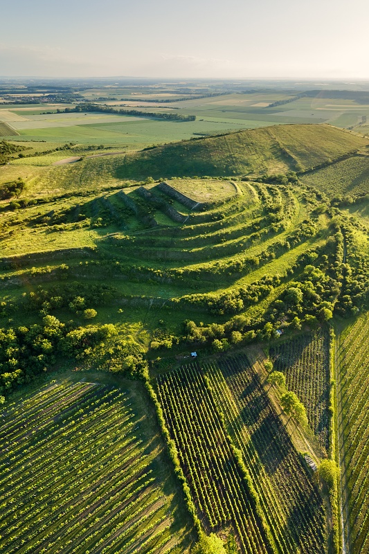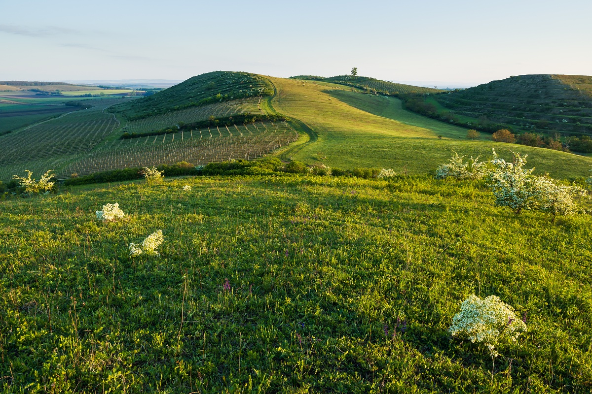 Na dohled od hranic s Rakouskem probíhá od severu na jih přes katastrální území čtyř vinařských vesnic hřbet pokrytý stepí a porosty křovin. Nejen jedinečný pohled na Pálavu je lákadlem téměř devadesát hektarů velkého liduprázdného území. Oko ojedinělého návštěvníka upoutá Velká Slunečná zterasovaná v druhé polovině 20. století, statný osamělý topol na vrcholu Růžové hory, ale i výhled do všech směrů odkudkoliv z hřebene kopců.