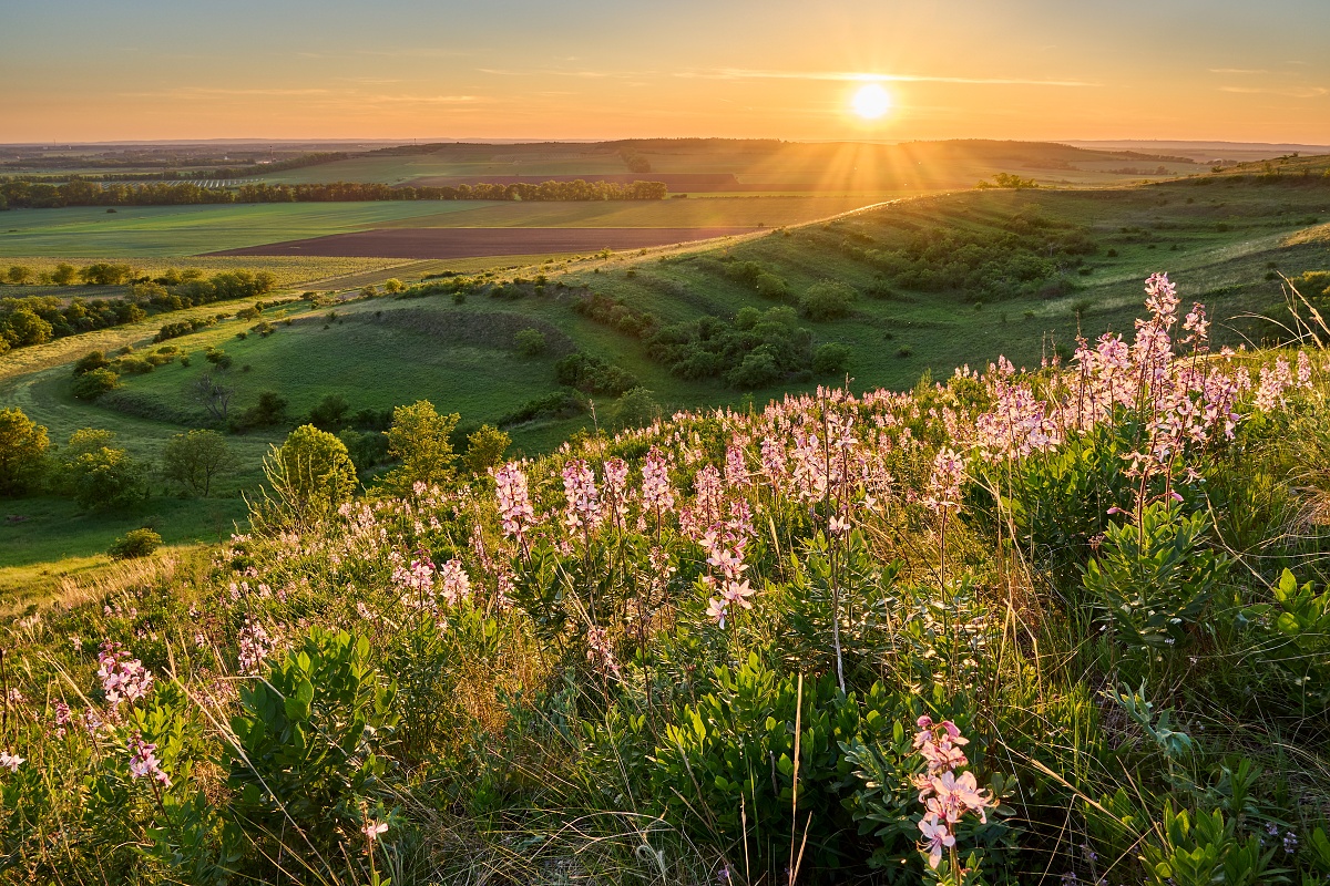 Rozsáhlé světle modré plochy vytvoří v červnu len chlupatý pravý a svahy kopců ozdobí ve větru vlající kvetoucí trávy vč. kavylů sličných. Všemi barvami hrající Liščí kopec, botanicky nejcennější nejjižnější část území, je v současnosti mimo jiné nejbohatší lokalitou pelyňku Pančićova, který je díky velmi teplému a suchému počasí posledních let viditelně spokojený – po dlouhé době opět kvete a utěšeně se rozrůstá do svého okolí. S blížícím se koncem léta vše nahradí všudypřítomná kombinace okrových travin, fialkové hvězdnice chlumní, červených šípků a rubínových hlohů v moři podzimem vybarvených vinic. A tak je zde celosezónní pestrá nabídka celé škály barev.