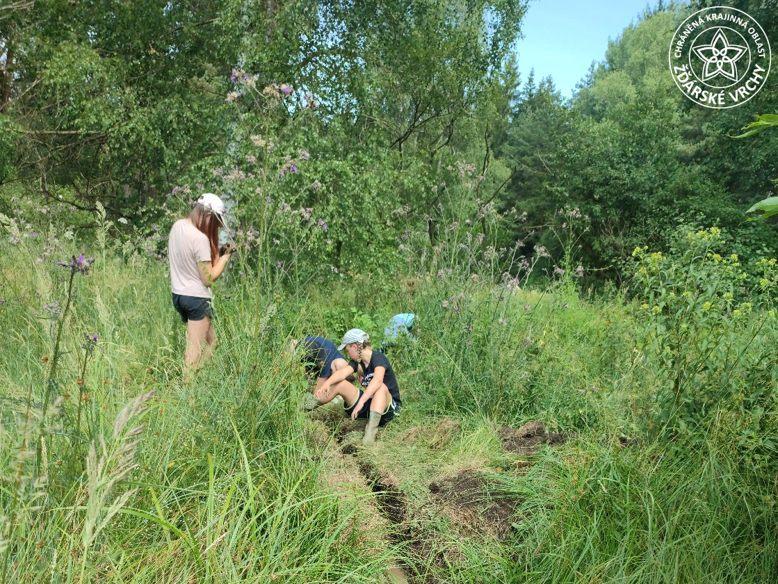 Dalším oddílem, který nedaleko CHKO pravidelně táboří, je 24. oddíl skautek a světlušek ze Střediska 24 Sever Praha. Se světluškami jsme společně vyrazili na výpravu, při které bylo plánováno seznámení se s invazní netýkavkou žláznatou a její redukce podél toku řeky Sázavy. Starší děvčata se vypravila na přenocování do evropsky významné lokality Babín, kde je hlavním předmětem ochrany vážka jasnoskvrnná. Zde odstraňovaly nedopasky, zejména náletové křoviny – krušinu a vrbu jívu. Obnovily také jednu z vyshlých tůní.