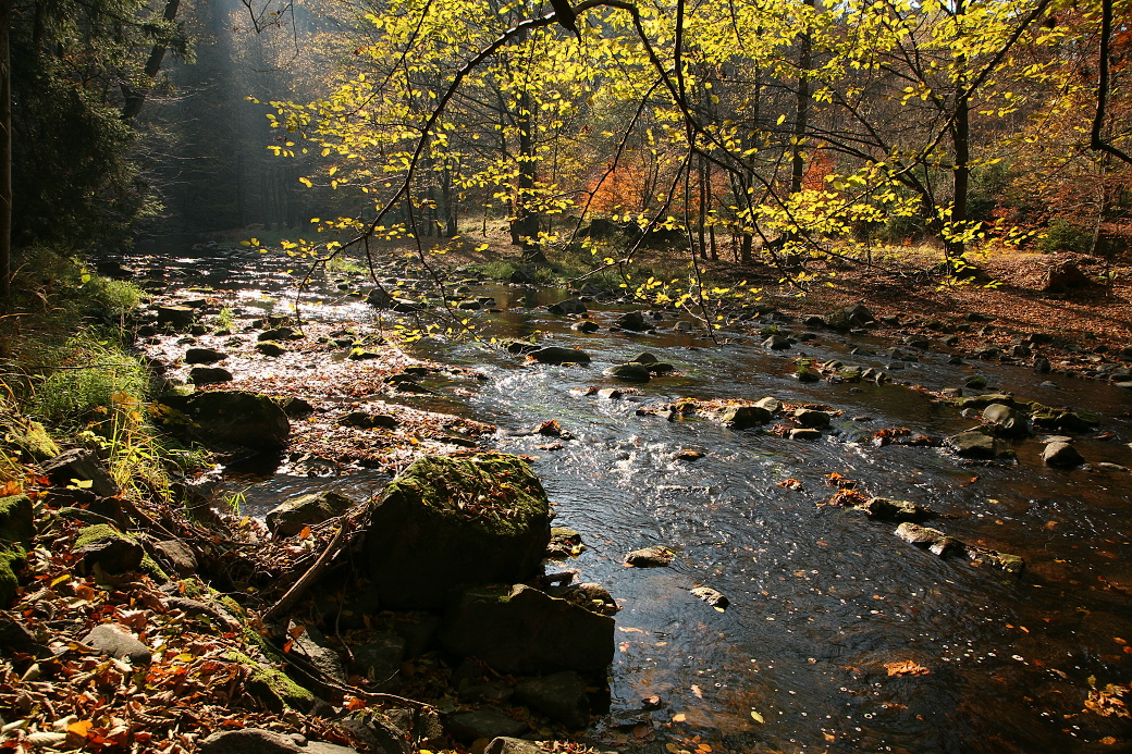 Doubrava meadrující skalnatým korytem.
