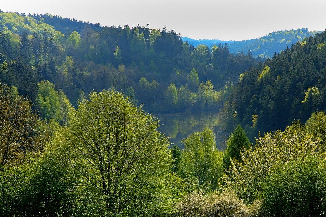 Pohled od zříceniny hradu Oheb na Sečskou přehradu.